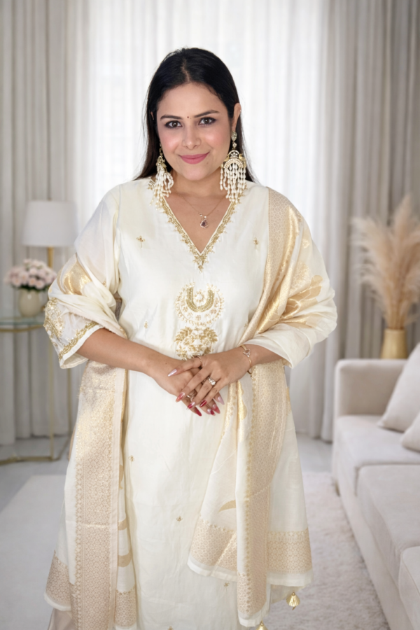 Ivory Queen Cotton Silk Kurta Set with Banarasi Dupatta