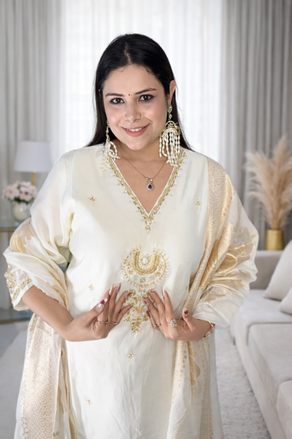 Be the first to review “Ivory Queen Cotton Silk Kurta Set with Banarasi Dupatta” Cancel reply